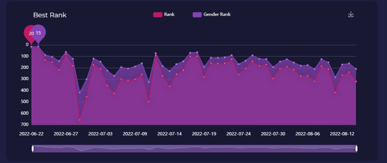 Следующая диаграмма позволяет более подробно рассмотреть изменение позиций на сайте среди стримеров вашего гендера.