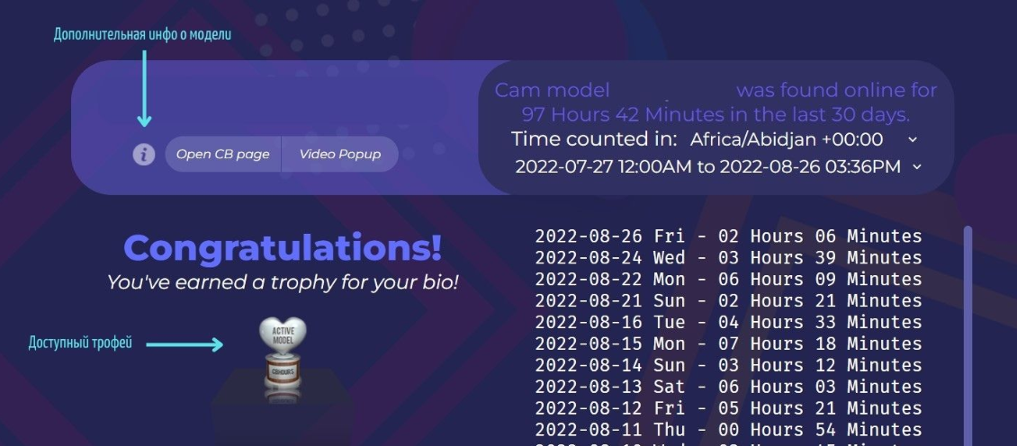 Последняя вкладка позволяет отказаться от статистики CbHours. Подробнее об этой функции расскажем ниже! Заведите себе за правило отслаживать свою статистику после каждой смены, так вы сможете понять заходит ли посетителям выбранное вами шоу или стиль работы, возможно образ. Если за смену много просмотров и фоловеров значит вы на верном пути, если наоборот вы видите спад то нужно проанализировать и понять где вы свернули не туда )