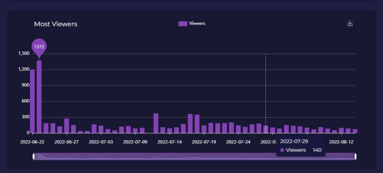 При наведении на график можно увидеть, в какое время была наилучшая или наихудшая позиция на сайте. Данная функция может помочь вам понять какой тип шоу является самым успешным конкретно для вас.