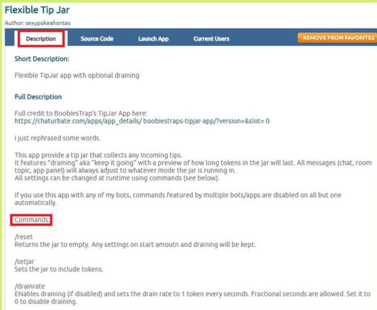 Команды в разных эппах и ботах ищем в первой вкладке Description.