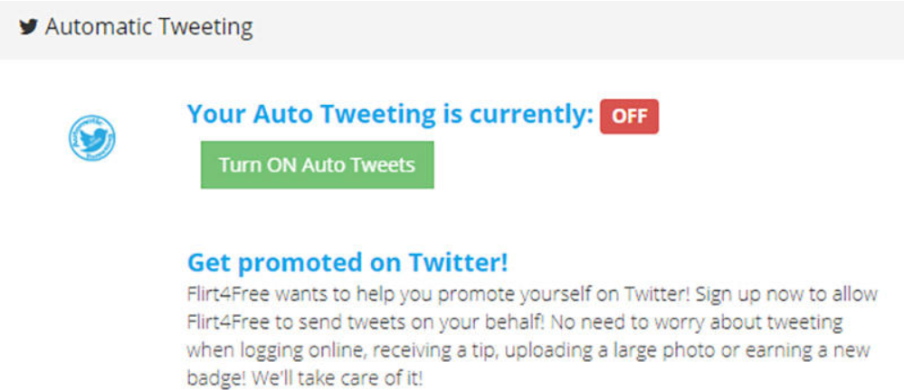 Social Media. На вебкам сайте F4F вы можете давать пользователям некоторые из своих социальных сетей. Укажите ссылки на свой Твиттер, Инстаграм, Снапчат (доступ к снапчату все же лучше продавать, а не выкладывать) и Перископ (если им еще кто-то пользуется). При подключении Твиттера, вы также можете включить автоматические твиты со своей страницы - когда вы будете выходить онлайн, получать большие чаевые, зарабатывать бейдж и т.д., в вашем Твиттере будут появляться уведомления об этом.
