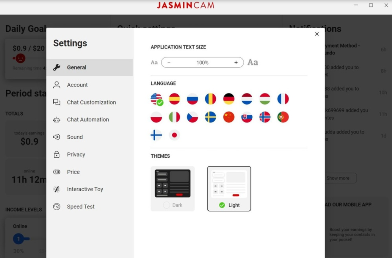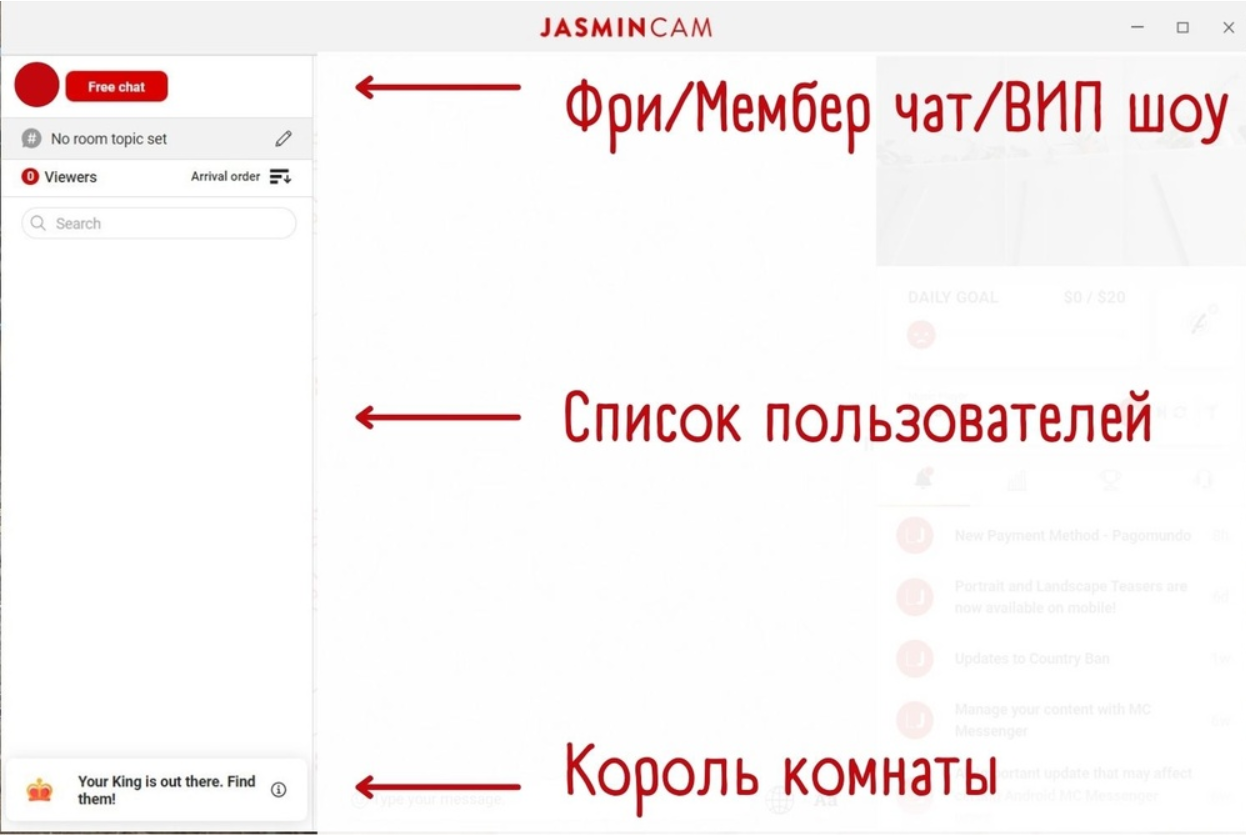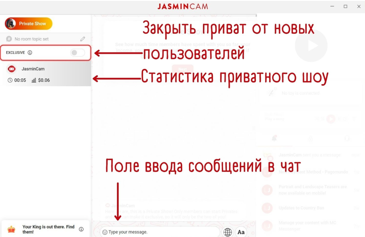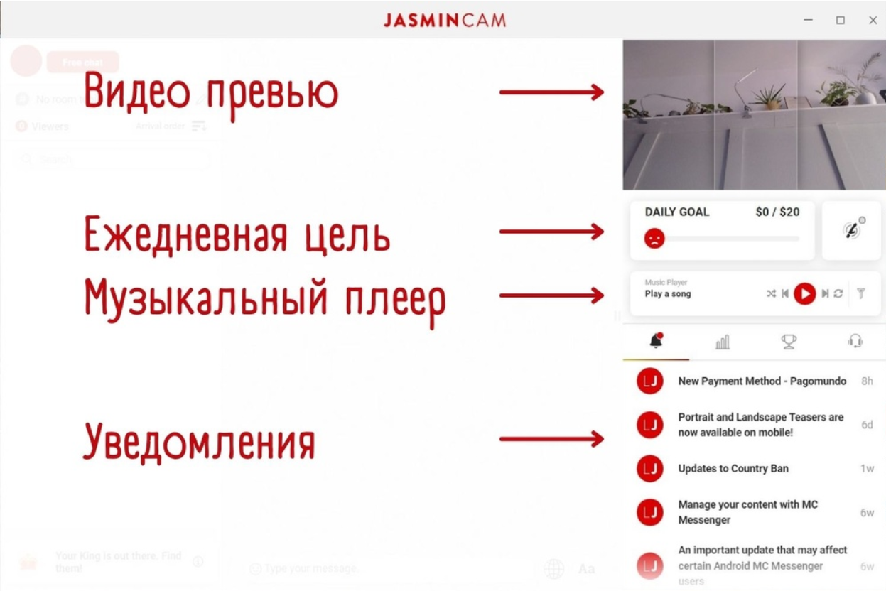 Звуковые оповещения – настройка звука сообщений в бесплатном, приватном и мембер чатах, оповещений о новых посетителях в комнате, оповещения о привате, а также возможно регулировать громкость оповещений.