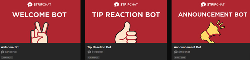 На странице выхода онлайн Stripchat, рядом с настройками вашего шоу, появилась вкладка Расширения - Extensions Library. На данный момент там находятся 3 бота, которые позволяют отправлять мемберам автоматические сообщения.