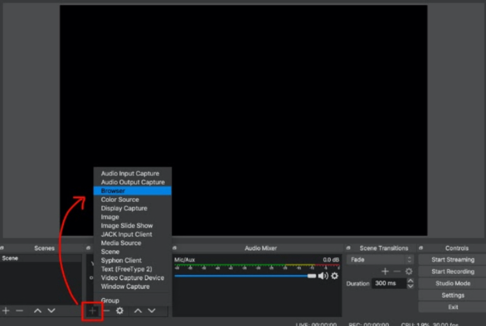 Шаг 4. Подключаем. Чтобы подключить анимации к стриму нужно скопировать сгенерированную URL ссылку под номером (3) и вставить ее в ОБС. Там мы добавляем новый источник, как на скриншоте ниже, выбираем категорию "браузер" и вставляем туда ссылку. Все, теперь можно выходить в онлайн.